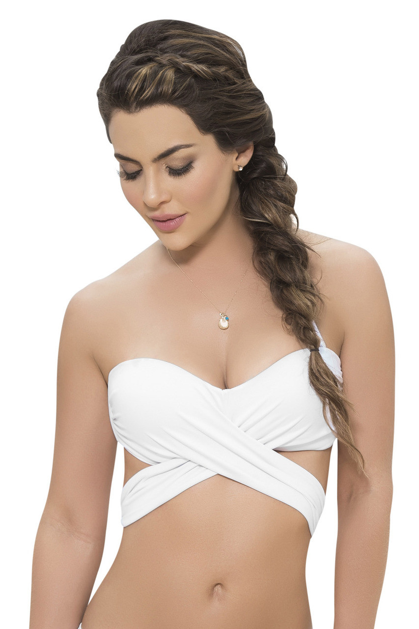 Reinvent your swimwear look again and again with a single top! You can wear this bikini top numerous ways from a wrap front style to a halter. It comes in Black, Botanic Print, White, Spring Print, Gold and Silver for endless mixing and matching.