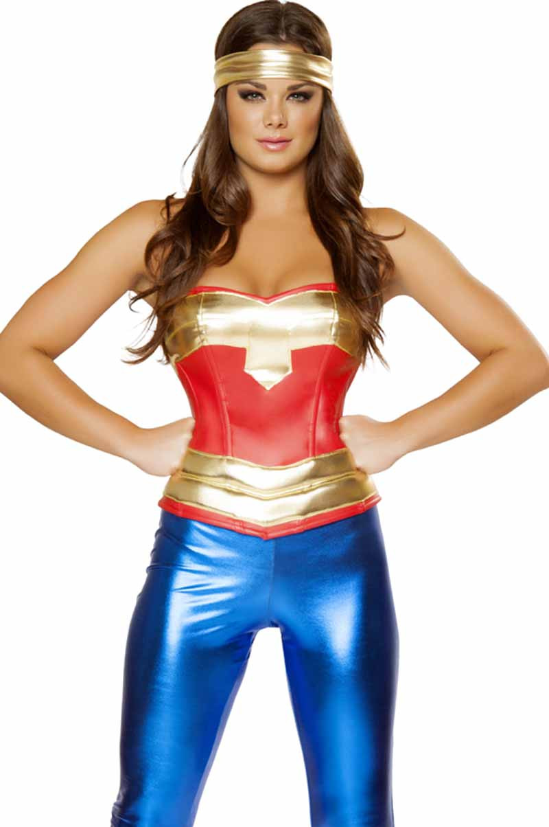 3PC Comic Cutie - Includes Leatherette lace-up corset, pants, and headband.