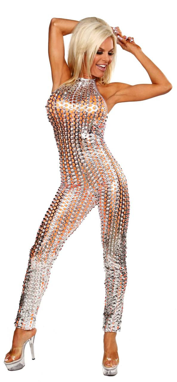 Sex Symbol High Neck Lazer Cut Lame Lined Jumpsuit.